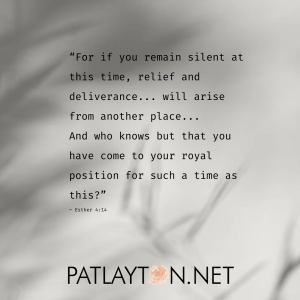 “For if you remain silent at this time, relief and deliverance… will arise from another place… And who knows but that you have come to your royal position for such a time as this” — Esther 414