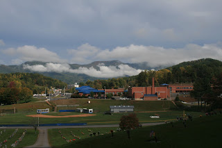This is the campus of Western Carolina University located in Sylva, our nearest town. Check out the clouds hanging low on the mountains. It was so cool!